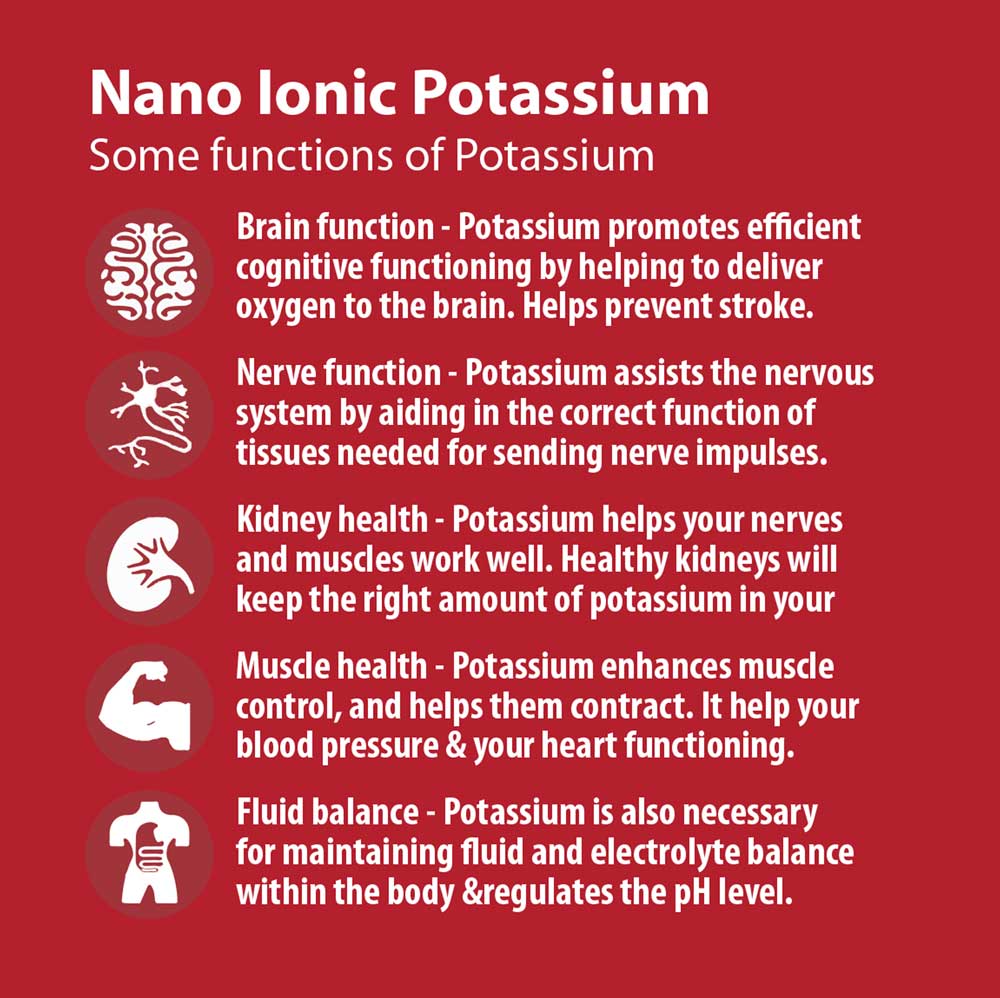 - THE MOST EFFECTIVE WAY TO TAKE POTASSIUM + VITAMIN C – Ultra Potent Nano Ionic Liquid Potassium allows absorption into the body’s cells at its highest rate, unlike tablets and capsules which are often more difficult for the body to fully absorb and utilise effectively.